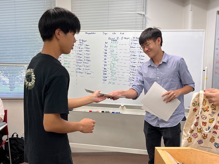 8月1日~5日、本校にて本校中高生、そして虎姫高校、彦根東高校から25名が参加してのAll Englishのプログラムを開催しました。学校、学年の枠を超えてグループを編成し、少人数制で1人のコーチがついての全て英語でのプログラムに、生徒たちは果敢に挑戦しました。各グループに入るコーチたちは、ケンブリッジ、エディンバラ、UCL、UCLA、デューク、UBCといずれも世界の名だたる名門大学の学生たちです。最終日、生徒一人一人が全員の前で発表に臨んだ後、一人ひとりに修了証書とコーチからのメッセージが手渡され、会場は達成感に包まれました。