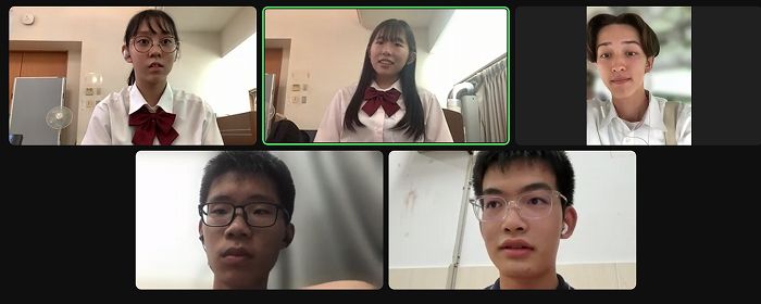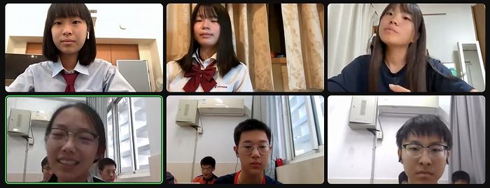 オンラインでの交流会を9月20日に第1回、10月18日に第2回を実施しました。非常に和やかな雰囲気で行われ、自己紹介に始まり、現在グループに分かれて自分たちの興味のあるトピックについて相談し、12月に予定されている最終発表に向けての準備を進めています。オンラインでのディスカッションを通じて、「違い」、そして「共通点」に気づきお互いに認めていく過程にある生徒たちの様子が見られます。