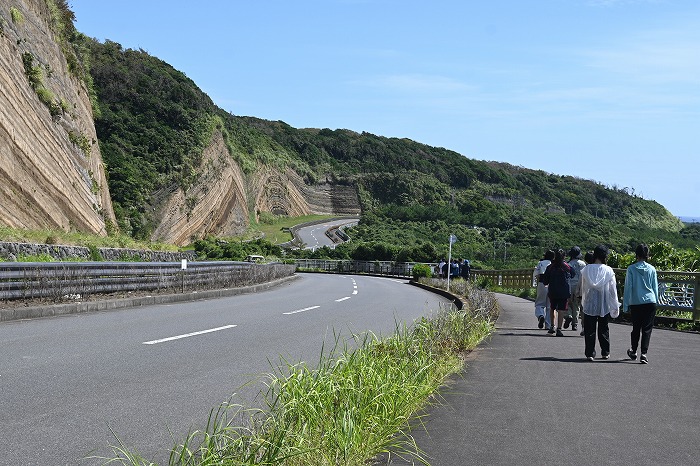 最終日は、かつては大きな火山島だった筆島を観察した後、波浮港で海洋生物実習を実施しました。その後、地層大切断面にて数万年の火山活動が刻まれた壮大な地質構造を観察し、火山博物館を訪問して大島の火山の歴史を学びました。現地での昼食後、午後の高速ジェット船で本州へ戻り、予定通り京都駅で解散しました。
