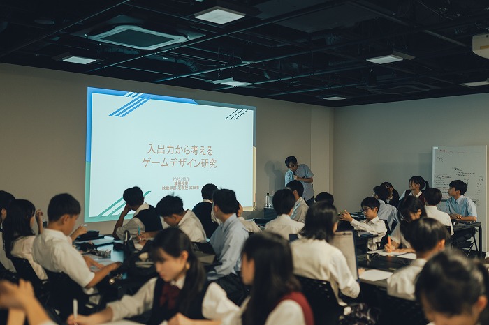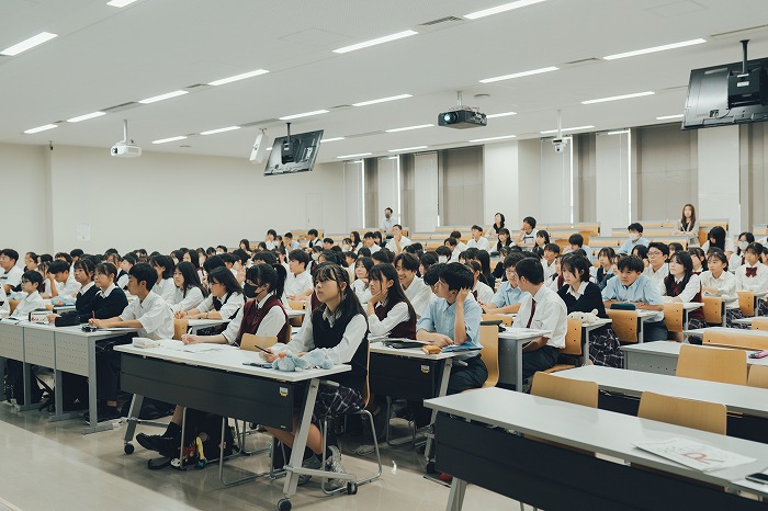 午前中は全員で「大学で学ぶ意味」についての講義を受けた後、グローバル教養学部・経営学部・映像学部・情報理工学部の4学部に分かれて、それぞれ2回の体験講義を受講しました。専門的な学びに真剣に耳を傾ける姿や、洗練された開放的なキャンパスに憧れを抱く生徒の様子が印象的でした。