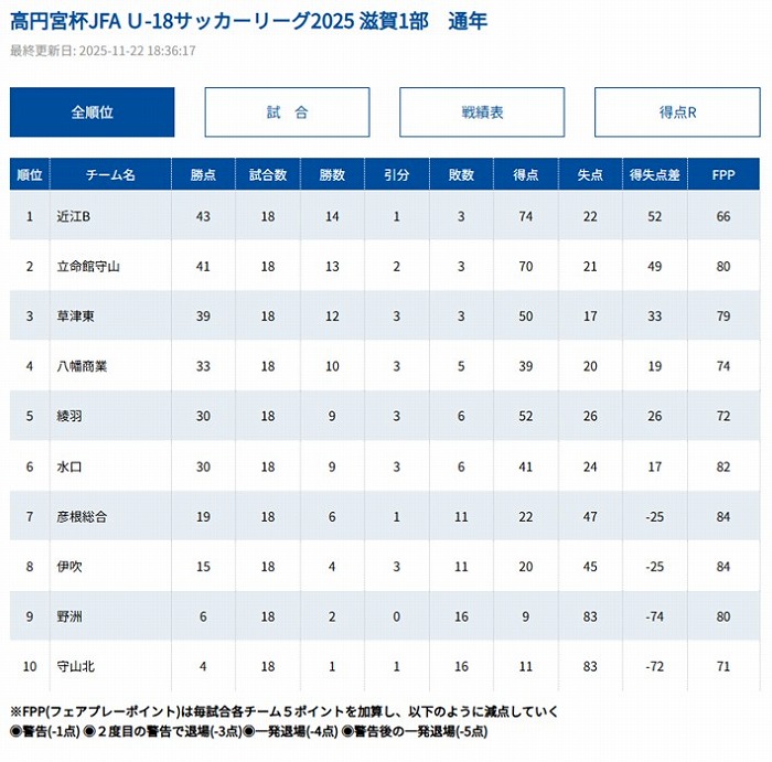 年間を通して行われる「滋賀県高校サッカー1部リーグ(高円宮杯U-18リーグ2025滋賀)」において、