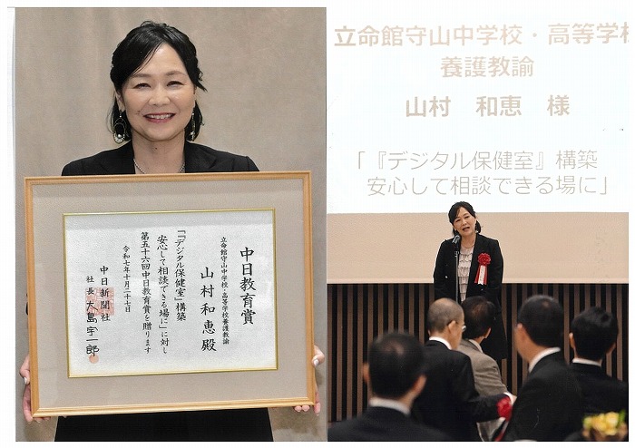 本校養護教諭の山村和恵先生が、「第56回 中日教育賞」を受賞しました。