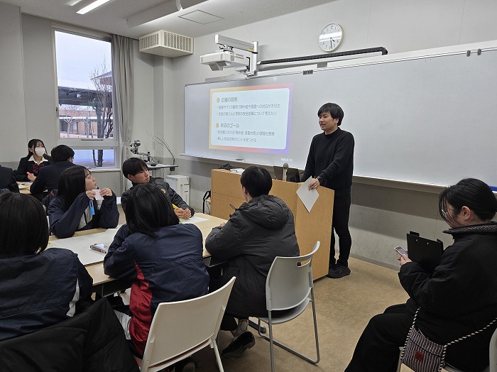 2月10日(火)の放課後、本校にて「熱中症・落雷対策ワークショップ」を実施しました。本企画は、2025年度立命館グラスルーツ実践支援制度に採択された「『想定外』を想定する:通学困難を契機とした防災教育モデルの開発」の一環として行われたものです。当日は山村和恵先生と、一般社団法人インパクトラボの上田隼也氏を講師に迎え、約30名の生徒とともに学校の安全について考えました。