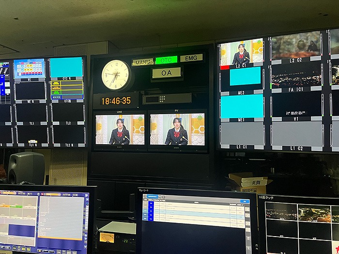今回の訪問で生徒たちが特に印象に残ったのはニュース収録体験です。タイマーを見ながら決められた時間に合わせてテロップを読み、映像に合わせて字幕を出すなど、実際の現場さながらの作業に挑戦しました。生徒からは「想像以上に難しかった」という声が聞かれ、普段何気なく見ている放送が多くの人の連携によって成り立っていることを実感する様子が見られました。