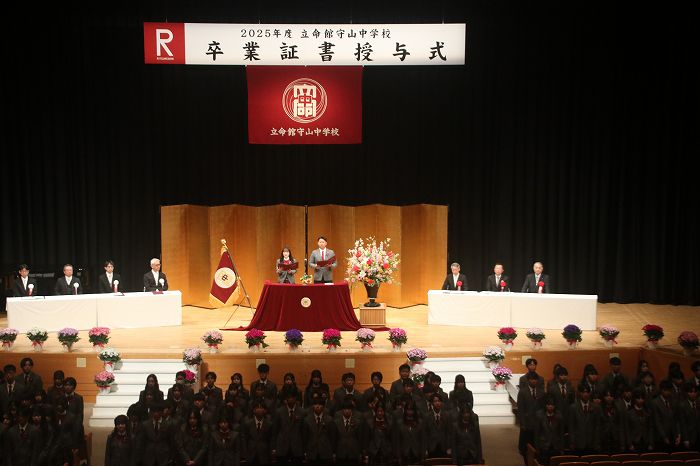 3月14日(土)、守山市民ホールにて立命館守山中学校卒業証書授与式が行われました。