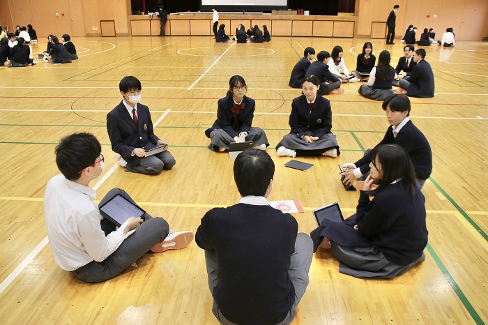 その後は、3学年混合の少人数グループに分かれ、1・2年生からの質問に対し、3年生が受験生としての立場から丁寧に答えるかたちの交流会を行いました。高校生活や大学受験への不安を抱く1・2年生に対して、温かく、親身なアドバイスを送る3年生の姿が印象的でした。
