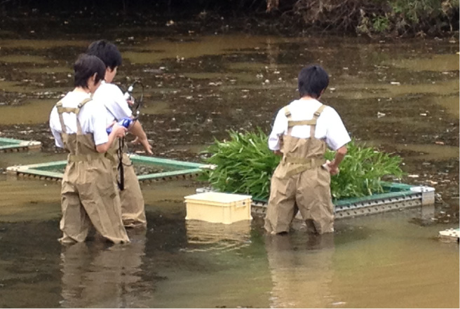 「文理融合教育による科学技術系能力を育成する教育プログラムの開発と地域連携・国際展開及び高大接続の新たなモデルの創出」という研究開発課題を掲げ、具体的研究として、研究Ⅰ:プログラム開発による問題解決能力、グローバルコミュニケーション能力、社会貢献力の育成、研究Ⅱ:水をテーマにした研究活動による地域連携・国際展開と立命館一貫教育推進本部・立命館一貫教育部との連携による高大接続の高度化、を設定した。